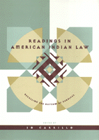 This collection of works many by Native American scholars introduces selected topics in federal Indian law. Readings in American Indian Law covers contemporary issues of identity and tribal recognition; reparations for historic harms; the valuation of land in land claims; the return to tribal owners of human remains, sacred items, and cultural property; tribal governance and issues of gender, democracy informed by cultural awareness, and religious freedom.