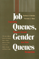The authors propose and develop a queuing theory of occupations' sex composition. This theory contends that the labor market comprises a "gender queue" with employers preferring male to female workers for most jobs. Workers also rank jobs into a "job queue." As a result, the highest-ranked workers monopolize the most desirable jobs. Reskin and Roos use this queuing perspective to explain why several male occupations opened their doors to women after 1970. The second part of the book provides evidence for this queuing analysis by presenting case studies of the feminization of specific occupations. These include book editor, pharmacist, public relations specialist, bank manager, systems analyst, insurance adjuster, insurance salesperson, real estate salesperson, bartender, baker, and typesetter/compositor.